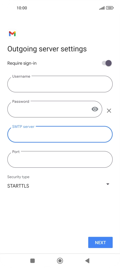 Press the field below "SMTP server" and key in the name of your email provider's outgoing server.