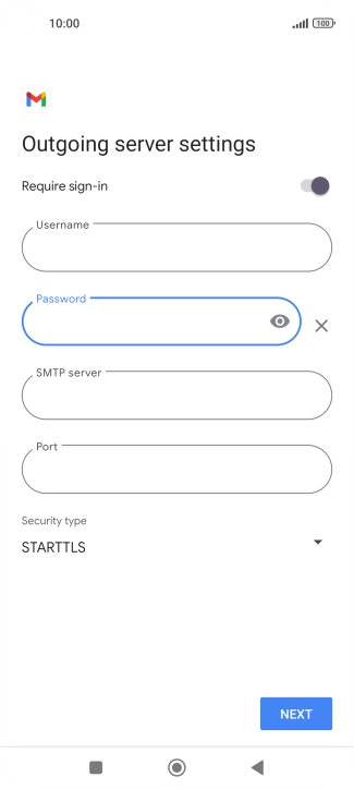 Press the field below "Password" and key in the password for your email provider's outgoing server.