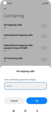 Key in your barring password and press OK. The default barring password is 1919.