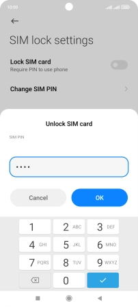 Press the indicator next to "Lock SIM card" to turn the function on or off.