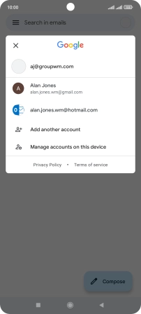 Press the required email account.