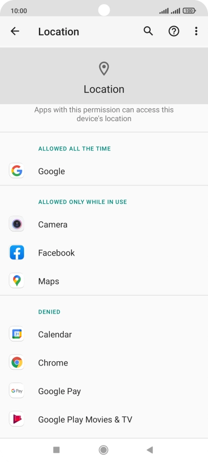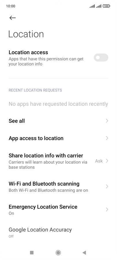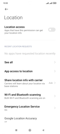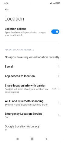 Press the indicator next to "Location access" to turn the function on or off.
