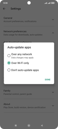 To turn on automatic update of apps using mobile network, press Over any network.