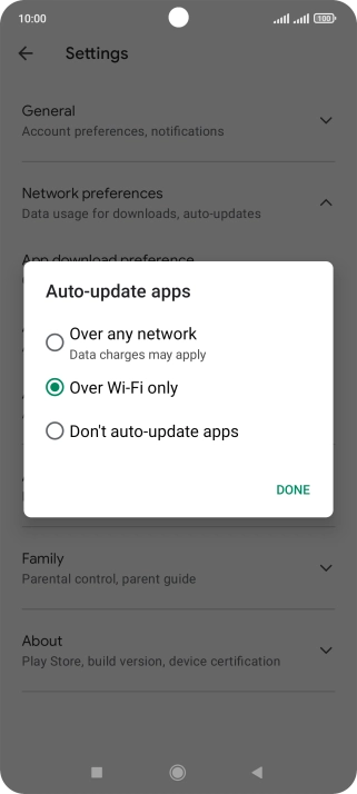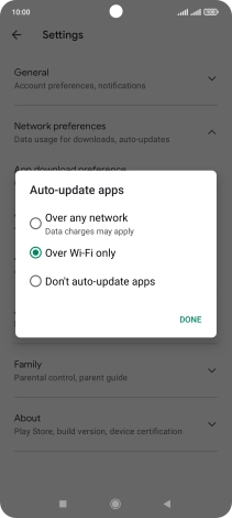 To turn on automatic update of apps using Wi-Fi, press Over Wi-Fi only.