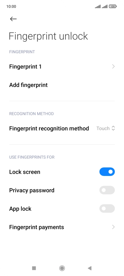 2 Create phone lock code using a fingerprint