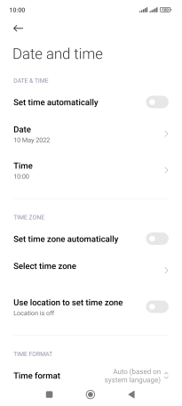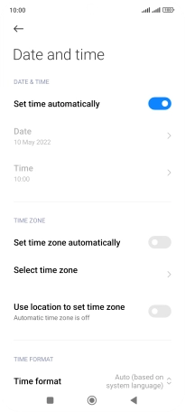 Press the indicator next to "Set time zone automatically" to turn on the function.