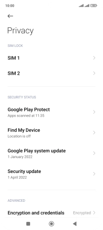 Press the indicator next to "Lock SIM card" to turn the function on or off.