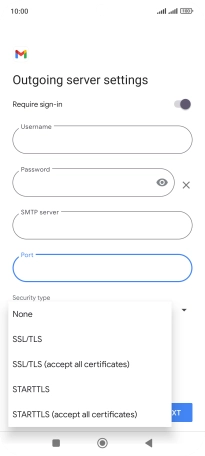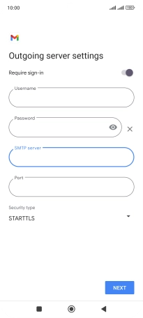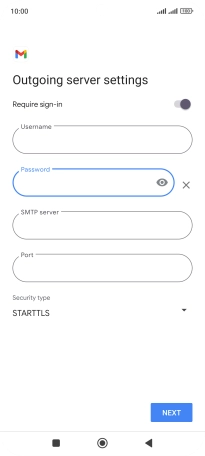 Press the field below "Username" and key in the username for your email the email provider's outgoing server.