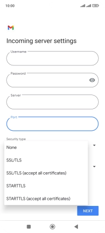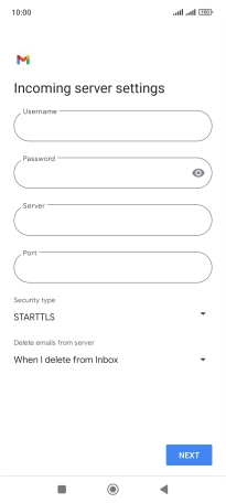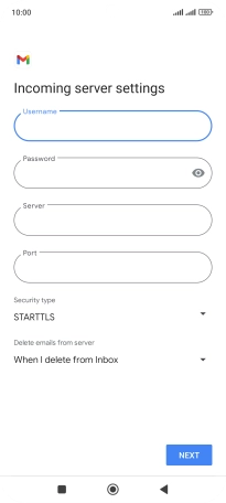 Press the field below "Server" and key in the name of your email provider's incoming server.