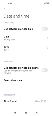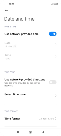 Press the indicator next to "Use network-provided time" to turn on the function.