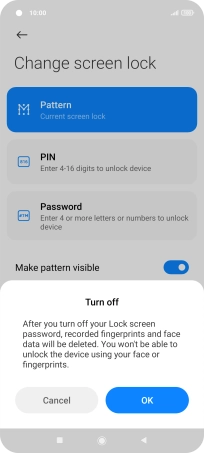 Key in the current phone lock code and press Turn off screen lock.