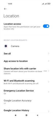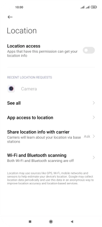 Press the indicator next to "Location access" to turn the function on or off.