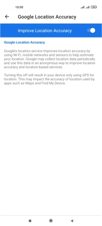 If you press the indicator next to "Improve Location Accuracy" to turn off the function, your phone can find your exact position using the GPS satellites but it may take longer as there is no access to supplementary information from the mobile network or nearby Wi-Fi networks.