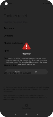 Press OK. Wait a moment while the factory default settings are restored. Follow the instructions on the screen to set up your phone and prepare it for use.