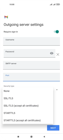 10. Enter outgoing server