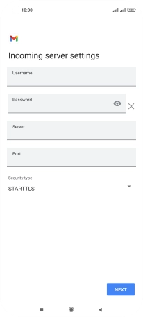 Press the field below "Server" and key in the name of your email provider's incoming server.