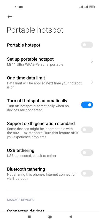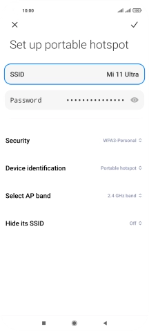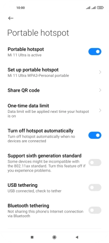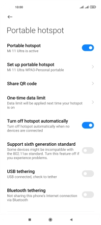 Press the indicator next to "Portable hotspot" to turn on the function.