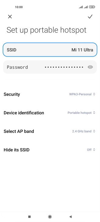Press SSID and key in the required name for the Wi-Fi hotspot.