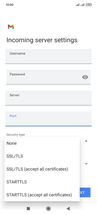 Press the field below "Server" and key in the name of your email provider's incoming server.