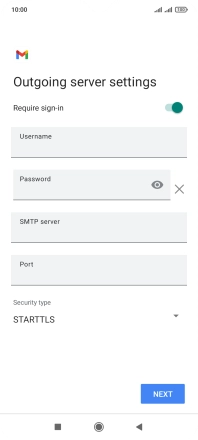 Press the field below "Username" and key in the username for your email the email provider's outgoing server.