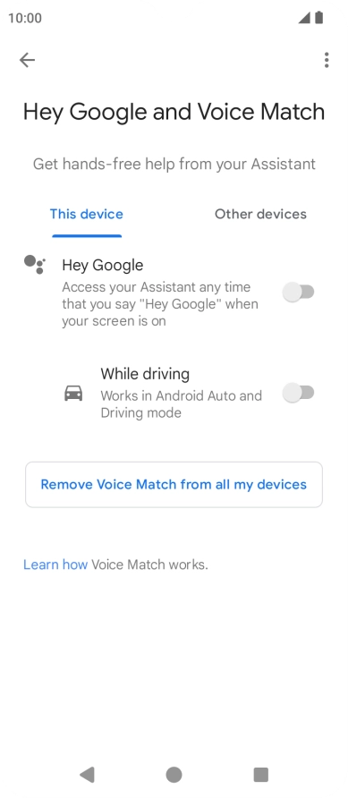 Press the indicator next to "Hey Google" to turn the function on or off.