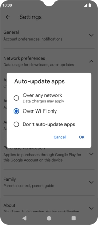 To turn on automatic update of apps using Wi-Fi, press Over Wi-Fi only.