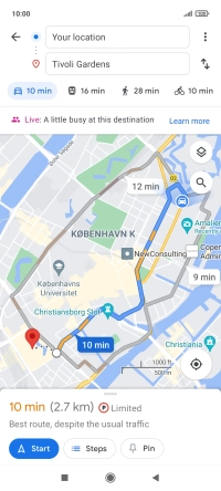 The travel information at the bottom of the screen shows your estimated time of arrival and distance to destination.