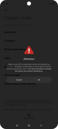 Press OK. Wait a moment while the factory default settings are restored. Follow the instructions on the screen to set up your phone and prepare it for use.