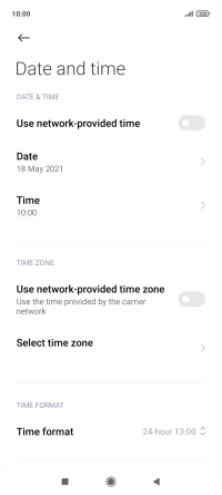 Press the indicator next to "Use network-provided time" to turn on the function.