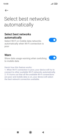 Press the indicator next to "Select best networks automatically" to turn the function on or off.