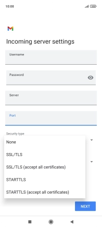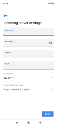 Press the field below "Server" and key in the name of your email provider's incoming server.