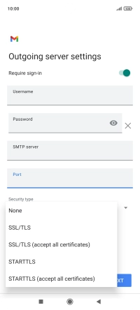 11. Enter outgoing server