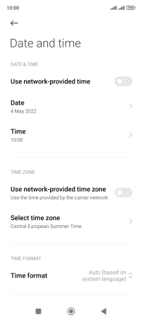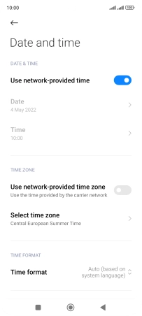 Press the indicator next to "Use network-provided time" to turn on the function.