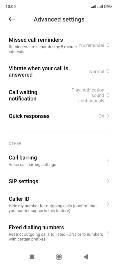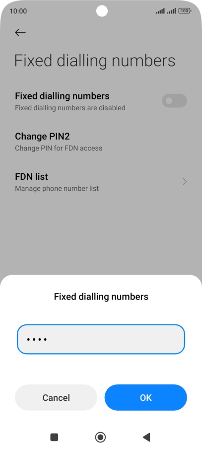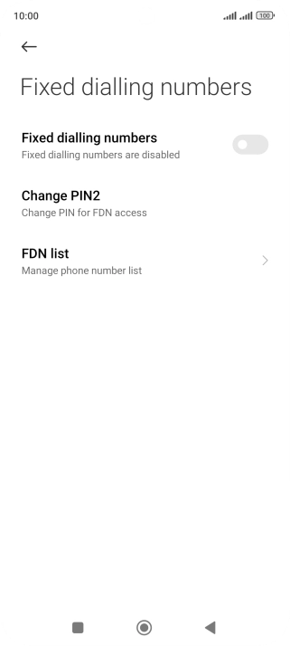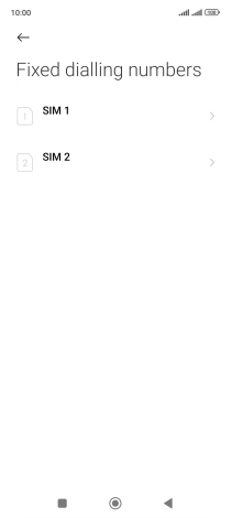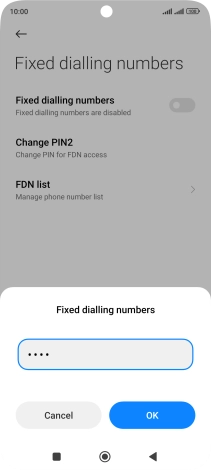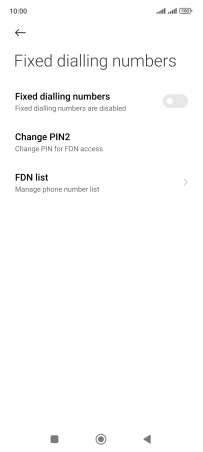 Press the indicator next to "Fixed dialling numbers" to turn fixed dialling on or off.