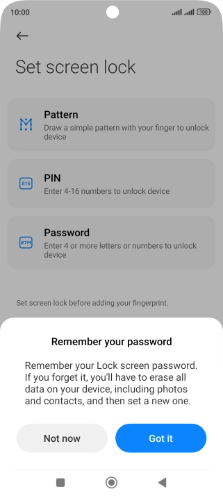 Follow the instructions on the screen to create the phone lock code using your fingerprint.