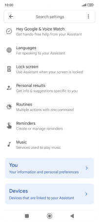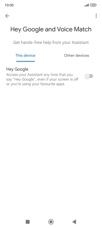 Press the indicator next to "Hey Google" and follow the instructions on the screen to turn the function on or off.