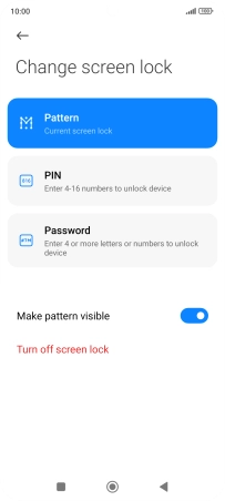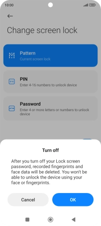 Key in the current phone lock code and press Turn off screen lock.