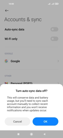 Press the indicator next to "Auto-sync data" to turn the function on or off.