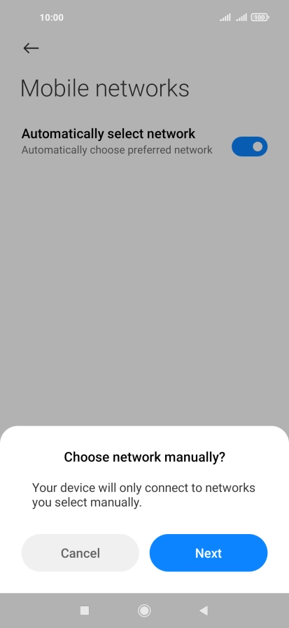 Press the indicator next to "Automatically select network" to turn off the function.