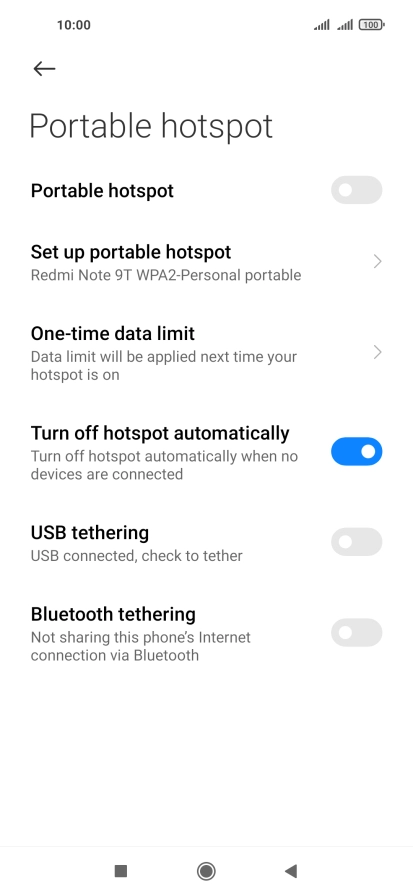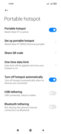 Press the indicator next to "Portable hotspot" to turn on the function.