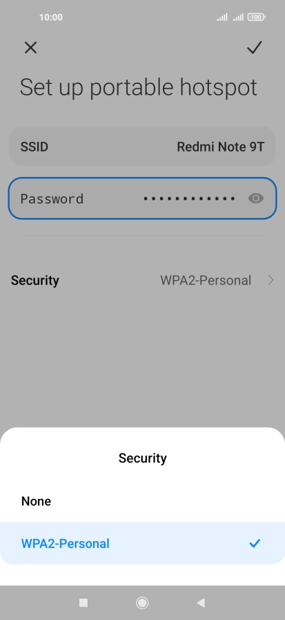 Press WAP2-Personal to password protect your Wi-Fi hotspot.